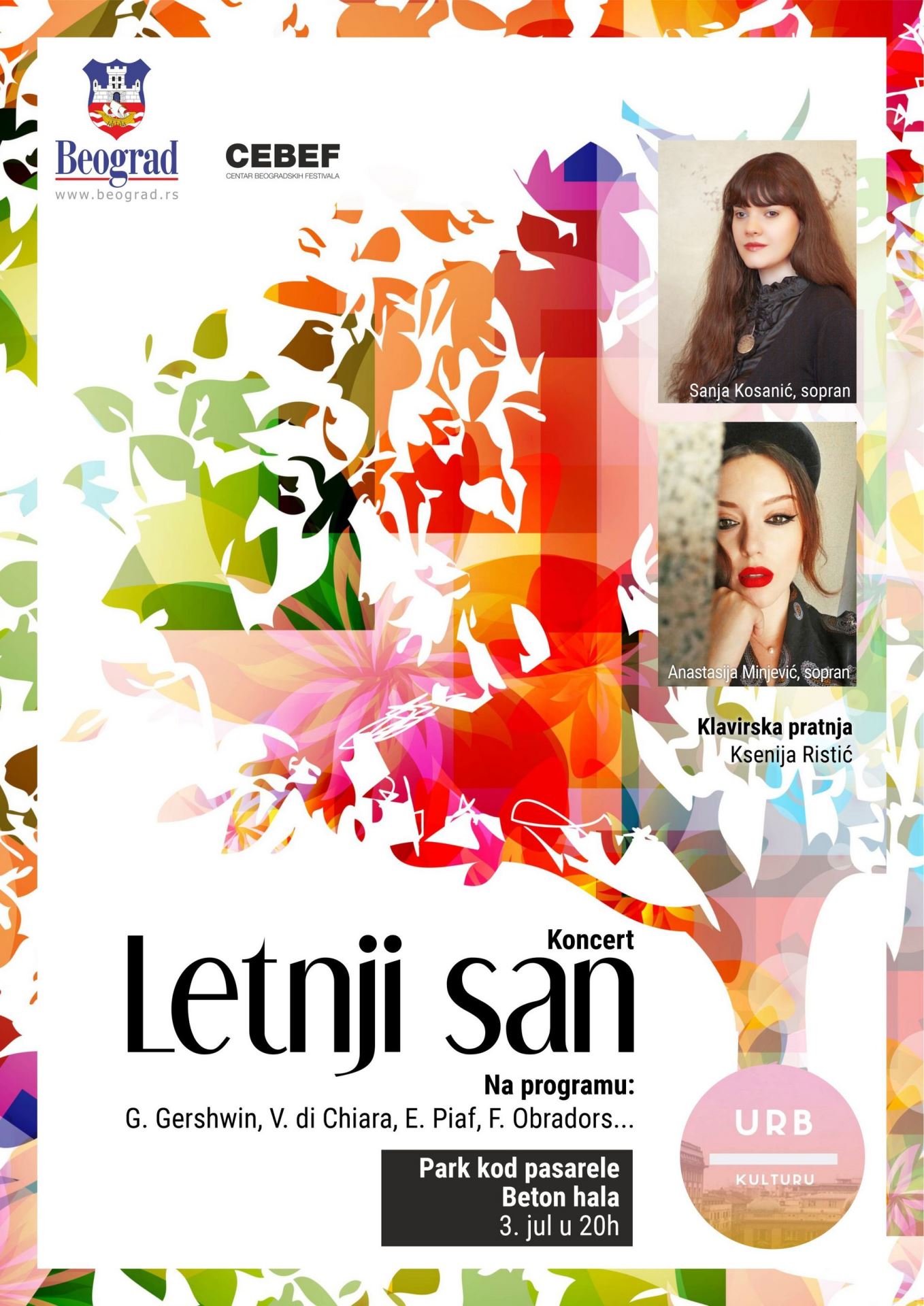 У оквиру пројекта Службе главног урбанисте „Урбанизација кроз културу”, концертом под називом „Летњи сан” грађанима ће се сутра у 20 часова представити сопрани Сања Косанић и Анастасија Мињевић.