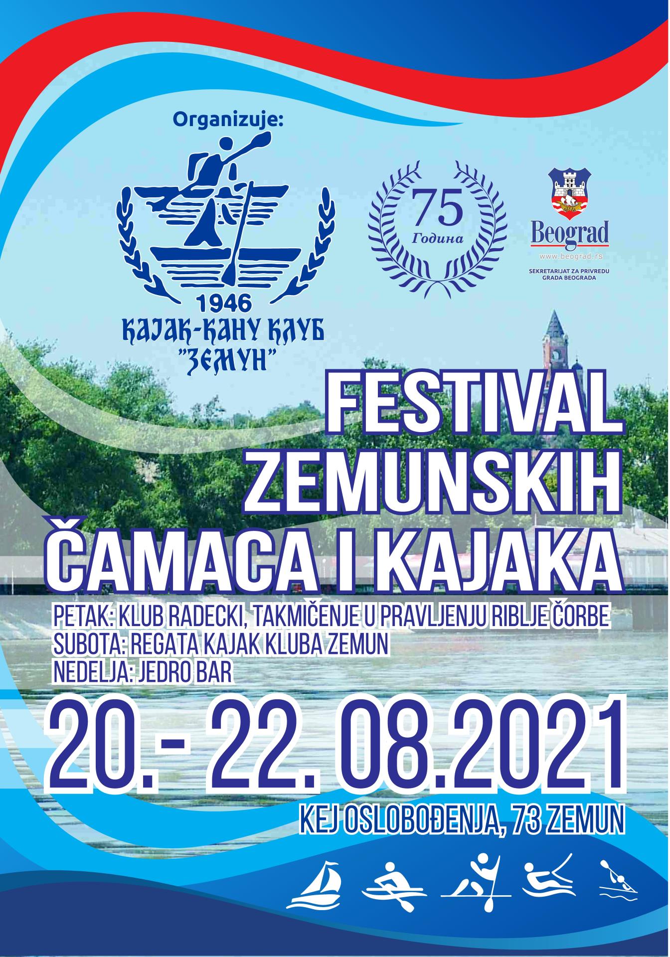 Традиционална манифестација „Фестивал земунских чамаца и кајака” биће одржана од 20. до 22. августа на Земунском кеју под покровитељством Секретаријата за привреду Града Београда.