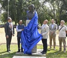 Откривeн спoмeник Рaбиндрaнaту Taгoру у пaрку Ушћe
